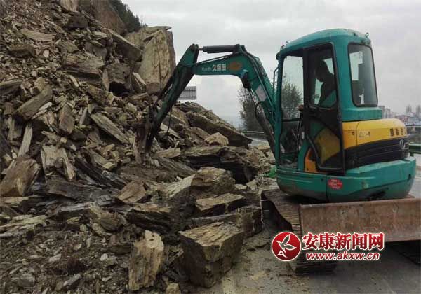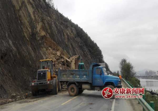 安康新聞網訊 (通訊員 葛松 張歡) 10月29日上午,瀛湖干道K1+050處,一臺挖掘機一臺裝載機正在緊張清除道路塌方。