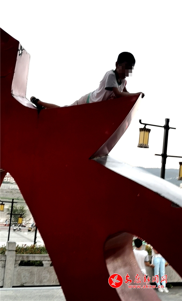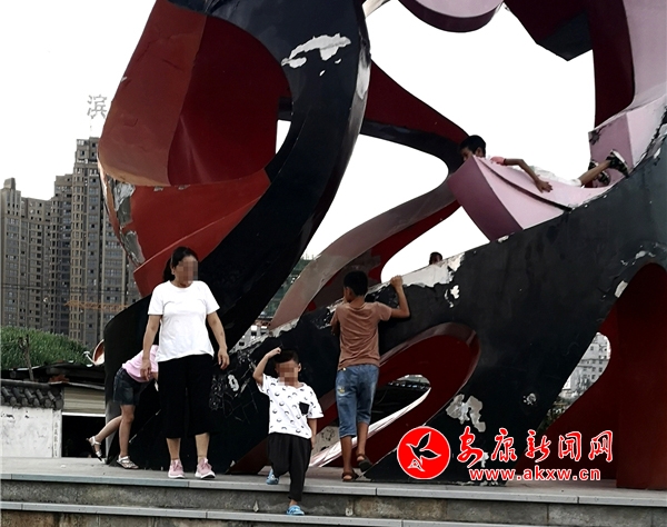 近日,記者在漢調(diào)二黃文化園看到,游玩的市民絡(luò)繹不絕,大部分市民都能做到文明游園,但其中也存在不文明行為。這里是文化園主題雕塑,幾個10歲左右的小男孩不斷攀爬雕塑,并在離地面約2米的高處逗留,現(xiàn)場既無工作人員勸導(dǎo)也沒有“禁止攀爬”的相關(guān)提示牌。記者 潘潤生 攝