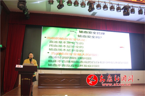 本次培訓(xùn)特別邀請了西安交通大學(xué)第一附屬醫(yī)院輸血科主任王寶燕教授,她結(jié)合自身多年工作經(jīng)驗(yàn),就《臨床輸血流程管理和臨床案例分析》進(jìn)行了深入細(xì)致的講解。安康市中心醫(yī)院輸血科禹梅老師從血液管理、成分血的輸注、評估等方面做了《臨床輸血實(shí)踐與控制》的精彩闡述。安康市中心血站副站長李宏就近年來全市臨床輸血質(zhì)量管理專項(xiàng)督查中存在的問題進(jìn)行了一一剖析,通報了各臨床用血單位無償獻(xiàn)血募集指標(biāo)完成的情況。