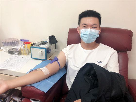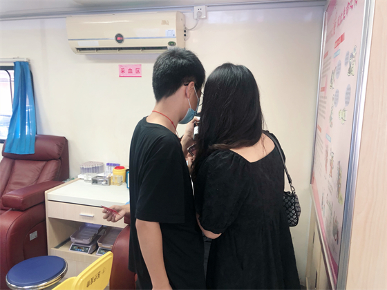 中秋節(jié)不僅街上熱鬧,獻(xiàn)血車上也熱鬧,鄧孟杰正坐在采血椅上獻(xiàn)血,他漂亮大方的女友站在旁邊跟他聊著晚上要吃什么,女友的弟弟坐在遠(yuǎn)一點(diǎn)的地方玩著手機(jī),女友的媽媽則坐在體檢桌前測量血壓,“一人獻(xiàn)血,三人陪同”的場景著實(shí)有點(diǎn)可愛,但鄧孟杰笑得十分開心,一直想獻(xiàn)血的他特別選了中秋這個日子,大概也是想和愛人親人一起分享這種美妙的人生體驗。鄧孟杰的女友拿起他的獻(xiàn)血證撒嬌到:“這次我們陪你,下次你也要陪我來獻(xiàn)血?!闭f完把手機(jī)塞給了一旁的弟弟,指揮他給自己和男友拍合照,一邊打趣弟弟拍照技術(shù)不好一邊把男友手里獻(xiàn)血證的位置調(diào)了又調(diào)。