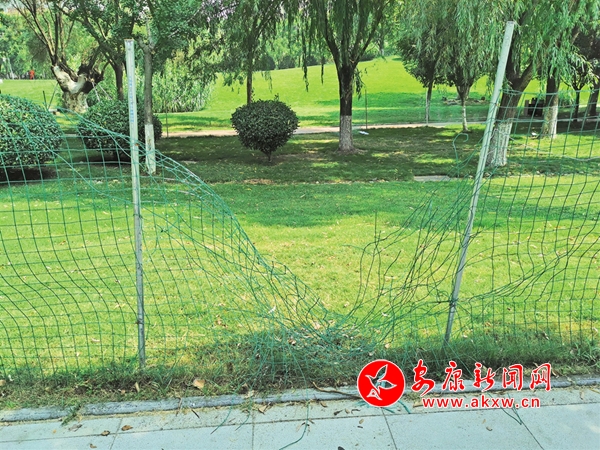 清明節(jié)期間,安康高新區(qū)運(yùn)動公園內(nèi)5處圍網(wǎng)被游人破壞。(王琳 攝)