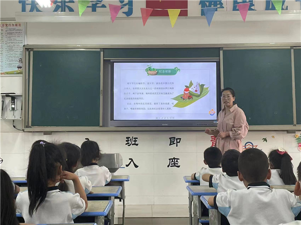 下午,各班組織召開了端午節(jié)主題班會(huì)。主題班會(huì)上師生一起追溯了端午節(jié)的由來(lái),講述了屈原的故事,讓學(xué)生明白端午節(jié)不只是粽子節(jié)、龍舟節(jié),更是民族節(jié)、愛國(guó)節(jié)。老師們還向?qū)W生介紹了有關(guān)端午的“端陽(yáng)”“重五節(jié)”“詩(shī)人節(jié)”“龍日”等不同內(nèi)涵的名稱,涉及端午懸掛艾草、佩香囊、賽龍舟、吃咸蛋、吃粽子等各地不盡相同的民風(fēng)習(xí)俗。