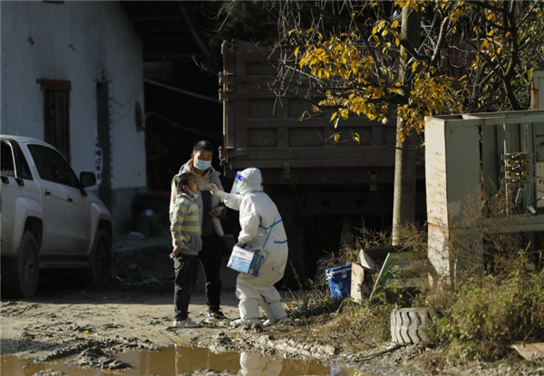11月25日中午,忙完第一輪核酸采集,再接到流調(diào)通知單后,王康又立馬帶著他的“小伙伴”前往三里社區(qū)為居家隔離人員做核酸檢測(cè),溝深路滑,因前幾日陰雨天氣路面濕滑,在上一處陡坡時(shí),車輪瞬間開始側(cè)滑,但是時(shí)間緊迫只能一試再試,大概試了20余次,在村上壓路車的幫助下,又試了兩次車子終于緩緩啟動(dòng)。喜悅之余他們就即刻趕往隔離群眾家中,“我們快一點(diǎn),再快一點(diǎn),就能讓等待的人少受一點(diǎn)冷”,這是“大白”們共同的心愿。