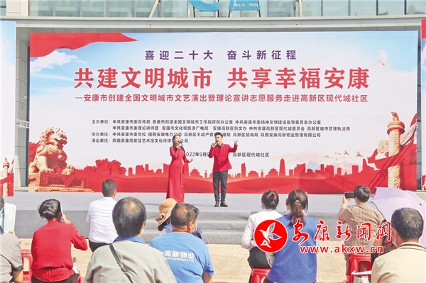 9月9日,一場以“共建文明城市,共享幸福安康”為主題的文藝演出和理論宣講活動在高新現(xiàn)代城社區(qū)舉行。整場活動,除了有群眾喜聞樂見的文藝節(jié)目,還設(shè)置有創(chuàng)建知識問答互動和創(chuàng)文知識專題宣講?,F(xiàn)場,志愿者們還熱情地向群眾發(fā)放印有創(chuàng)文內(nèi)容的宣傳冊、涼扇、垃圾袋等,大家紛紛贊揚:“形式生動活潑,宣傳入腦入心!”