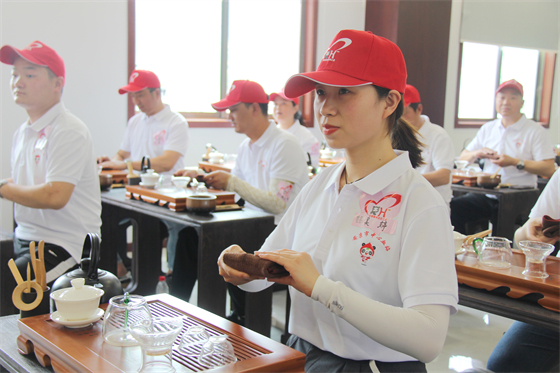 在隨后的炒茶和茶藝課上,大家更是興趣濃厚,在老師們耐心細致地講解引導(dǎo)下,大家一步一步動手親為,在舒緩的音樂聲和高雅的氛圍中感受著茶文化的熏陶。