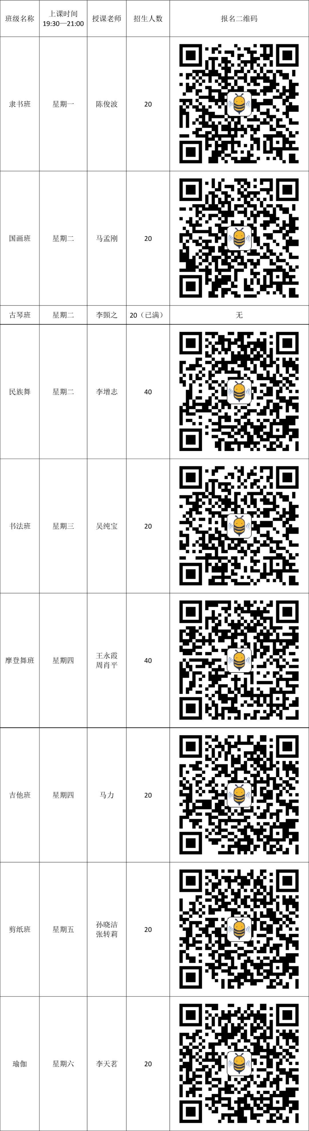 書畫剪紙類四樓書畫室教室、舞蹈類二樓排練廳、吉他四樓音樂(lè)教室、瑜伽四樓瑜伽教室、古琴四樓古琴教室