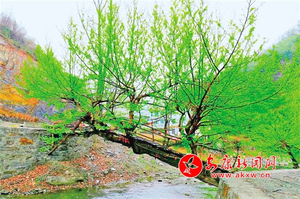四十多年前,一場百年不遇的洪災(zāi),沖壞堤坎,毀了樹木,襲了田地,河灘一片狼藉。這棵老柳,根部的土石被洪水沖刷得所剩無幾,沒有泥土的支撐樹干緩緩傾斜,晃悠了一天一夜,頭部漸漸地搭到了東岸堤坎。次日清晨,河?xùn)|有人發(fā)現(xiàn)了,立即喊上四五個(gè)小伙子,從樹身爬過,去西岸救人、查災(zāi)。緊接著,兩岸的人們爭相過河到對岸去救災(zāi)、救苗,又陸續(xù)過河修路、種地,進(jìn)而過河上學(xué)、出山,一連數(shù)月都從樹身爬過,把這樹干當(dāng)作橋身,你來我往地通行于兩岸。于是,這道天然“樹橋”,既凝聚了生產(chǎn)救災(zāi)力量傳遞了兩岸情感,又溝通了人流、物流、信息流。