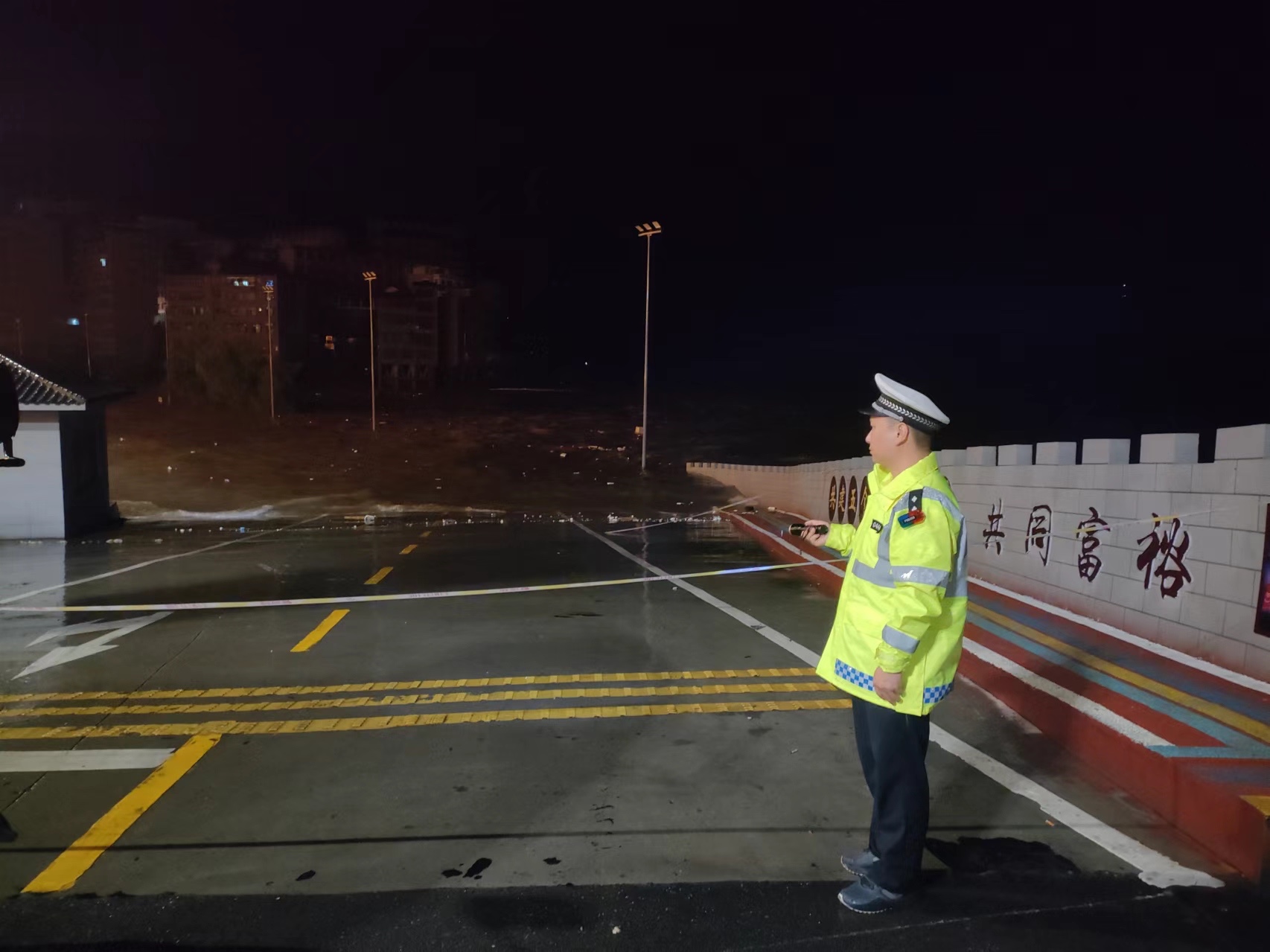 旬陽市公安交警持續(xù)堅守防汛一線,無畏風(fēng)雨、無懼危險,開展交通管控、救援救助、應(yīng)急處突、隱患排除等相關(guān)工作,全力保障人民群眾生命財產(chǎn)安全。暴雨中,交警身著熒光綠雨衣,不畏風(fēng)雨,堅守在重要路段,對有滑坡、落石等危險路段及具有安全風(fēng)險的臨水臨崖路段,采取臨時禁行的管制措施,引導(dǎo)過往車輛繞行,注意行車安全,協(xié)同相關(guān)部門現(xiàn)場進行清理,對不能現(xiàn)場處理的隱患及時上報,確保排險不留盲點、隱患不留死角。同時加強道路的巡邏管控,通過遠(yuǎn)端分流,引導(dǎo)車輛、行人安全有序通行,確保群眾出行安全。以雨為令,以夜為伴,逆風(fēng)而行,通宵達旦,風(fēng)雨中,一抹抹“熒光綠”在熠熠閃光。