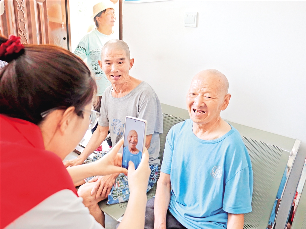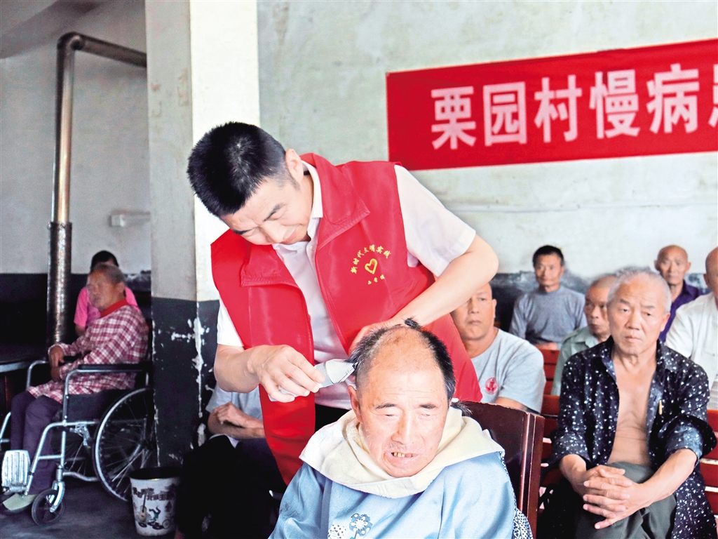 為弘揚中華民族“孝老、敬老、愛老”傳統(tǒng)美德,8月7日,白河縣西營鎮(zhèn)機關(guān)黨支部組織黨員來到西營鎮(zhèn)區(qū)域敬老院開展“弘揚孝義善舉 倡導(dǎo)文明鄉(xiāng)風(fēng)”志愿服務(wù)活動?;顒又?,志愿者們?yōu)槔先藗兲峁┝烁啐g補貼認(rèn)證、修剪指甲、打掃衛(wèi)生等志愿服務(wù)。(劉焱 胡曉華 攝)