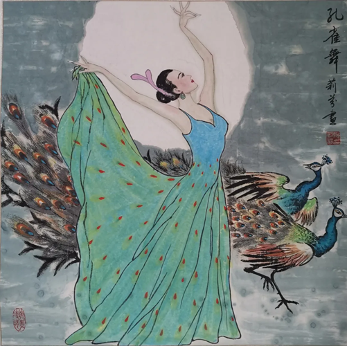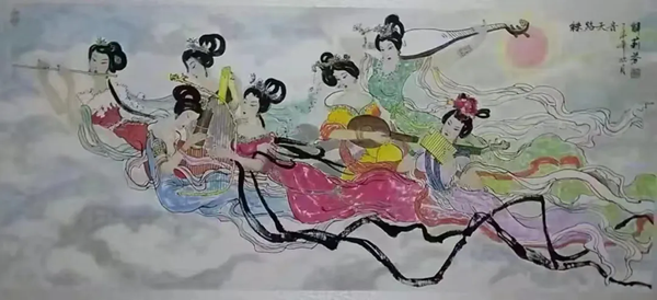 解大姐是陜北人,性格開朗、直率,說(shuō)話中間或帶出一些濃重的陜北口音。雖說(shuō)她主業(yè)從于政界,但她微笑的背后卻潛藏著不可掩飾的藝術(shù)天賦,揮發(fā)著令人奪目的藝術(shù)才情。繁雜的政務(wù)工作之余,她創(chuàng)作不輟,堅(jiān)持不懈,居然在多個(gè)藝術(shù)門類收獲頗豐,好評(píng)連連。寫小說(shuō),她寫出幾十萬(wàn)字的長(zhǎng)篇出版發(fā)行;寫劇本,竟拍成了電影予以公映;學(xué)國(guó)畫,亦讓藝術(shù)界的大咖贊口不絕。我雖不才,空有浮名,但深耕藝界多年,對(duì)于其中的好賴還能分出一二。我感到,一個(gè)人的人品和藝品基本一致,解大姐的藝術(shù),是扎根于她熟悉的陜北大地的藝術(shù),是生長(zhǎng)在山峁峁上經(jīng)歷風(fēng)霜雨雪的藝術(shù),就像那陜北倔強(qiáng)的疙瘩柳,散發(fā)著對(duì)土地對(duì)生活的親近和熱情,對(duì)人生價(jià)值實(shí)現(xiàn)的不屈和追求??吹剿膰?guó)畫新作,有陜北剪紙等民間藝術(shù)的滋養(yǎng)和影響,真切而樸實(shí)。她的飛天人物系列,泥古而不落窠臼,使我想到疙瘩柳條隨風(fēng)擺動(dòng)的婀娜風(fēng)姿,溫溫潤(rùn)潤(rùn),令人遐思和向往;她的花鳥畫作,使我想到陜北山野一片蒼茫之間,一朵兩朵盛開的山丹丹花,嬌艷得令人不忍觸手;她的山水畫作,又猶如陜北山原上嫩黃的棗花,洋溢著撲面而來(lái)的質(zhì)樸、清新和率真之氣。