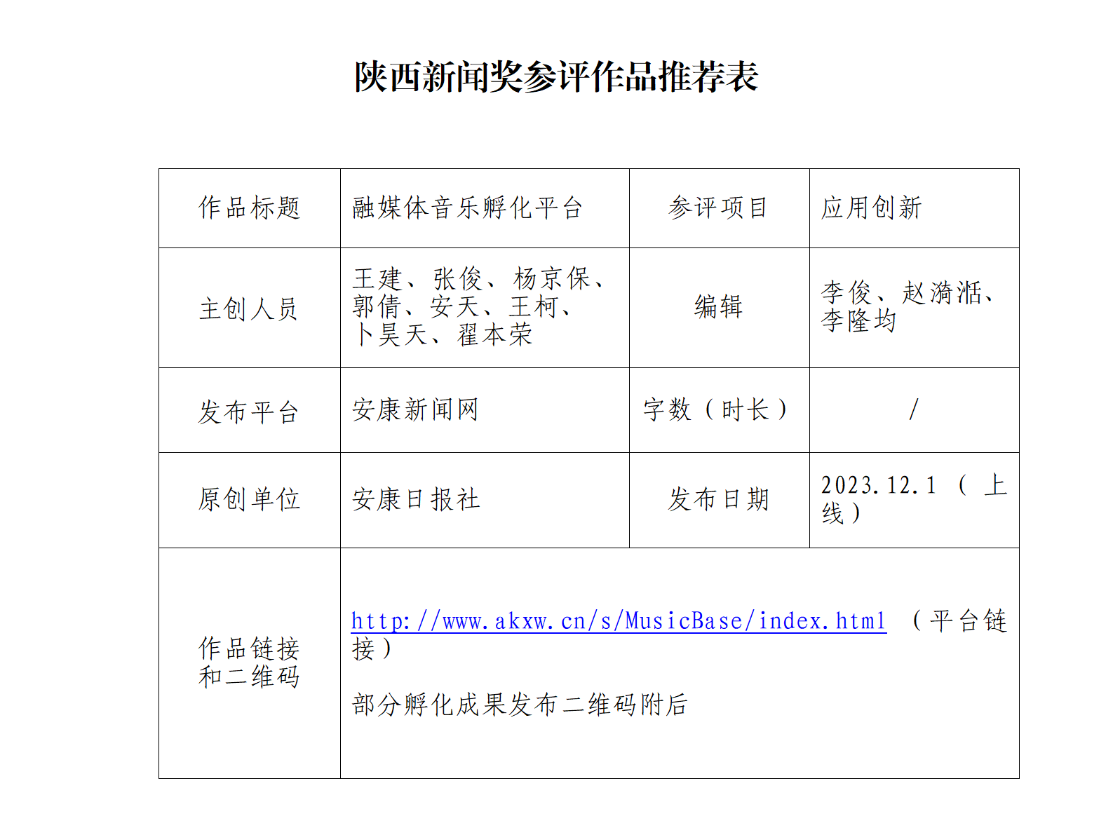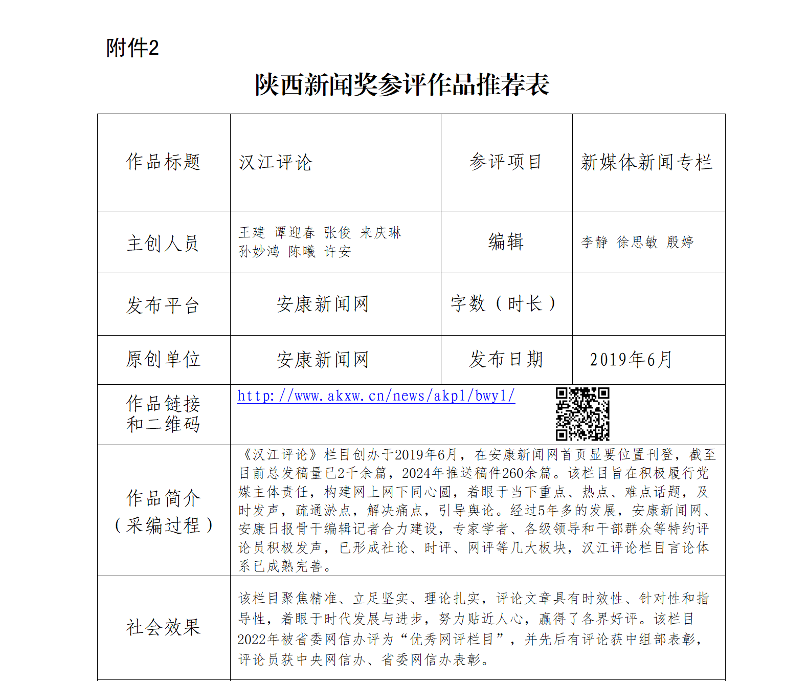 經過社黨委研究決定,擬推薦以下2件新聞作品參評“2024年度陜西新聞獎融合報道、應用創(chuàng)新和新媒體新聞專欄”。公示時間從2025年1月6日至2025年1月10日,公示期5個工作日。如有不同意見,請向安康日報社機關紀委、新聞管理部反映。