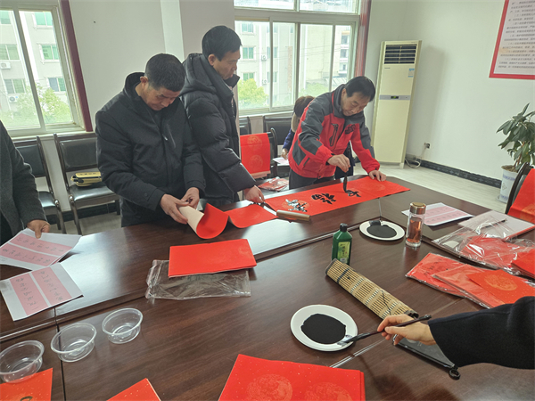 “無(wú)聯(lián)不成春,有聯(lián)春更濃?!睘楹霌P(yáng)中華優(yōu)秀傳統(tǒng)文化,營(yíng)造歡樂(lè)祥和的節(jié)日氛圍,中渡社區(qū)新時(shí)代文明實(shí)踐站特別舉辦了“墨香四溢迎新春,福滿中渡暖人心”主題活動(dòng)?;顒?dòng)現(xiàn)場(chǎng),墨香撲鼻,熱鬧非凡。社區(qū)邀請(qǐng)到了書法協(xié)會(huì)的老師們,他們個(gè)個(gè)滿懷激情,揮毫潑墨。在紅彤彤的春聯(lián)紙上,“一帆風(fēng)順吉星到,萬(wàn)事如意福臨門”“喜居寶地千年旺,福照家門萬(wàn)事興”等飽含美好寓意的春聯(lián)一氣呵成。