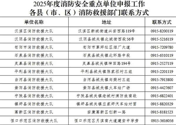 安康市消防救援支隊(duì)關(guān)于申報(bào)2025年度消防安全重點(diǎn)單位的公告