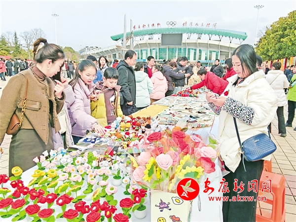 今年春節(jié)期間,胡運翠接到了漢濱區(qū)文化館的電話,邀請她去金州廣場非遺展示區(qū),展示她的手工編織作品,同她的作品一同列入展示的還有花饃、糖畫、手工竹節(jié)人等。她精心準備了許多手工編織品,在金州廣場右側,胡運翠的攤位前圍滿了小朋友,他們被這些栩栩如生的小動物深深吸引,紛紛拉著家長購買。胡運翠一邊熱情地向顧客介紹自己的作品,一邊現(xiàn)場編織,嫻熟的手法引得眾人連連稱贊。