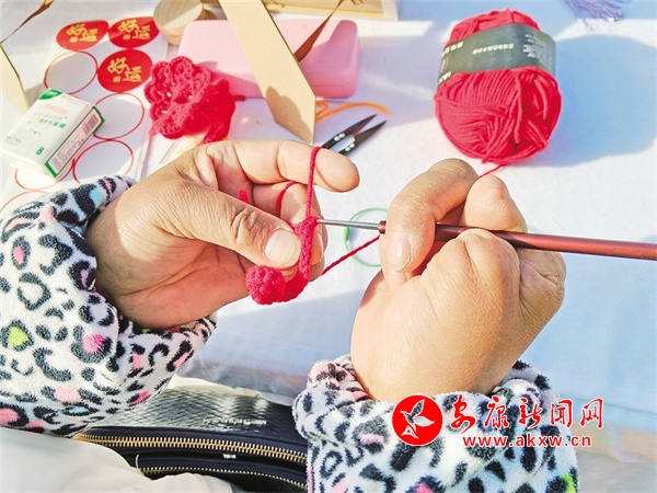 隨著鉤針上下飛舞,不一會兒工夫,一團團彩色的毛線就變成精美的小動物、小花等栩栩如生的造型……初次見到胡運翠時,她正在金州廣場擺攤,攤位上一排排整齊的小物件,引來大、小朋友紛紛圍觀、選購。
