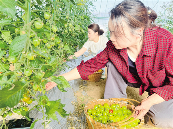 在分揀包裝區(qū),果農(nóng)們將圣女果按顏色、甜度分級(jí)包裝?!扒嗌鸲雀?,適合鮮食;紅色果酸甜適中,主要供應(yīng)餐飲店?!贝迕駝⒋蠼憬榻B,自己以前在外地務(wù)工,現(xiàn)在在家門口就能上班,每個(gè)月能掙3000多元。在歡樂(lè)采摘區(qū),游客們一邊采摘一邊拍照,發(fā)微信朋友圈展示觀光采摘的樂(lè)趣。