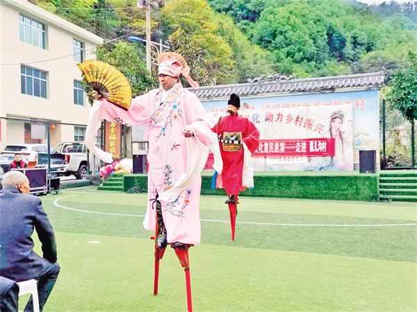 在五峰村,村支部書記羅仁春告訴記者,2023年村委會(huì)牽頭成立了五峰村文化民俗文藝協(xié)會(huì),陸續(xù)加入的48名會(huì)員涵蓋老中青三代,既有傳承高蹺絕技的老人,也有主動(dòng)學(xué)習(xí)弦子腔的年青一代。今年32歲的村民小梅加入?yún)f(xié)會(huì)后,一改往日下班后悶在家中的狀態(tài),每天下午吃完飯都會(huì)下樓和新認(rèn)識(shí)的姐妹載歌載舞,很快就成為舞蹈隊(duì)的主力?!耙郧安恢牢覀兇迳线€有文藝協(xié)會(huì),自從村上干部告訴我后,我就趕緊加入了這個(gè)小團(tuán)體,既鍛煉了身體,又愉悅了心情,生活幸福感越來越強(qiáng)烈?!鄙碇璧阜男∶飞碜随鼓?,水袖飛揚(yáng)間,明媚的笑容如花一樣燦爛。