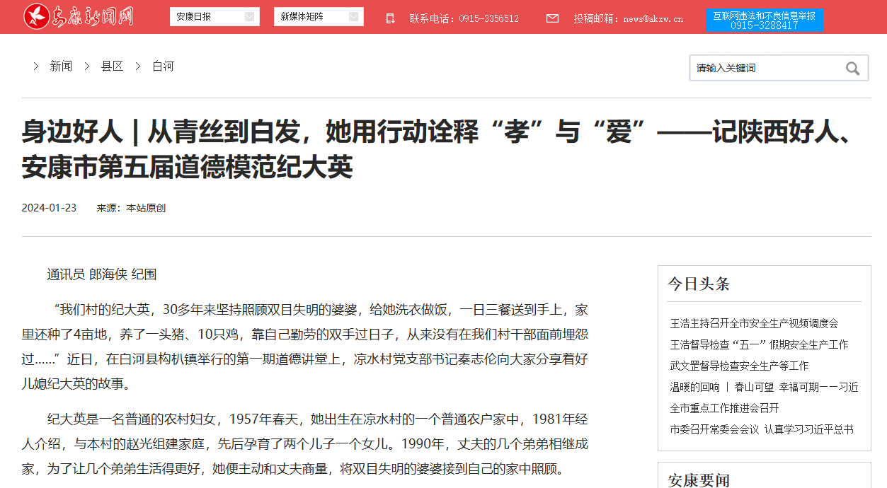 《身邊好人 | 從青絲到白發(fā),她用行動詮釋“孝”與“愛”——記陜西好人、安康市第五屆道德模范紀(jì)大英》(2024-01-23發(fā)布)