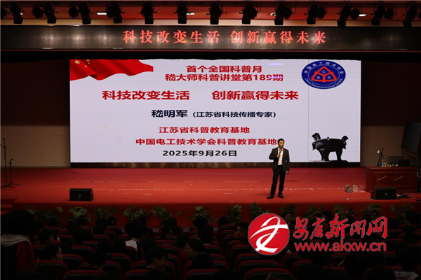本網(wǎng)訊(通訊員 雷建民)為積極響應(yīng)國(guó)家首個(gè)“全國(guó)科普月”活動(dòng)號(hào)召,落實(shí)新修訂的《中華人民共和國(guó)科學(xué)技術(shù)普及法》精神,營(yíng)造校園崇尚科學(xué)、鼓勵(lì)創(chuàng)新的良好氛圍,借“組團(tuán)式”幫扶力量,9月26日,紫陽中學(xué)特邀江蘇省科技傳播專家、常州市突出貢獻(xiàn)人才、中國(guó)電工技術(shù)學(xué)會(huì)科普教育基地負(fù)責(zé)人嵇明軍教授來校,開展了一場(chǎng)別開生面的科普講座活動(dòng)。
