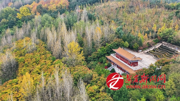 初冬時節(jié),漢陰的龍崗公園內(nèi)外層林盡染,與人文景觀交相輝映,構成一幅流動的山水畫卷。公園地勢連綿,園內(nèi)步道蜿蜒,亭臺錯落。從空中望去,茂密的林木披上了紅、黃、橙交織的花衣裳,與常綠樹種相互點綴,猶如大地的調(diào)色盤。山頂?shù)凝垗忛w巍然屹立,在金黃烏柏與如火楓葉的簇擁中,成為整個公園的視覺焦點。登閣遠望,漢陰縣城全貌盡收眼底,月河如帶穿城而過,與秋日晴空共同勾勒出“水天一色”的壯美圖景。(通訊員 文婷 徐歡)