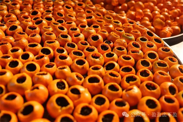 茶廠的工人們早已忙碌起來。他們將一個個挑選好的金錢桔仔細(xì)清洗掉表面的灰塵。特制的小刀輕輕掀開桔帽,果肉被小心掏出,留下一個完整的桔殼,然后再小心翼翼地清洗8至10次,直到桔皮的苦澀味兒全部去掉才能進行攤涼。那認(rèn)真的模樣仿佛在對待一件件珍貴的藝術(shù)品,陽光透過窗欞,照在攤涼的桔殼上,泛著琥珀般的光澤。