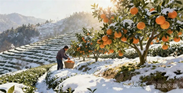 清晨的第一縷陽光灑在果園里,枝頭的積雪輕輕滑落,露出了被雪水浸潤過的金錢桔。它們像一個個小燈籠,在翠綠的枝葉間閃爍著誘人的光澤。果農(nóng)老張摘下一個,剝開薄薄的桔皮,酸甜的汁液在口中爆開,那是大自然最純粹的饋贈?!斑@場雪下得好?。 彼Φ脻M臉皺紋都舒展開來,“這樣的桔子,做出來的小桔茶才夠味。”