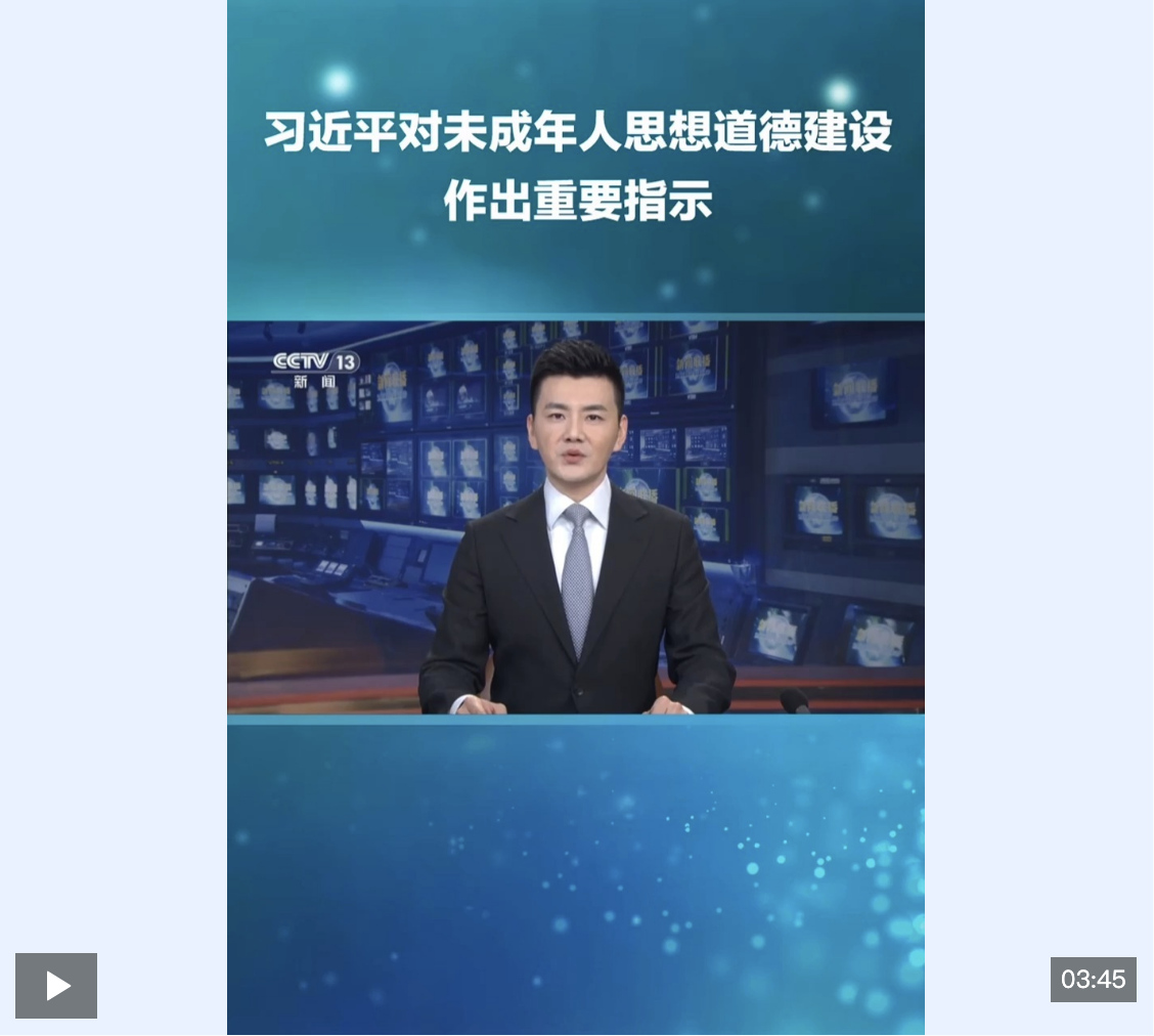 近日,習(xí)近平總書記對未成年人思想道德建設(shè)作出重要指示,要求落實(shí)立德樹人根本任務(wù),堅(jiān)持把未成年人思想道德建設(shè)作為戰(zhàn)略性、基礎(chǔ)性工作來抓。(詳情>>)