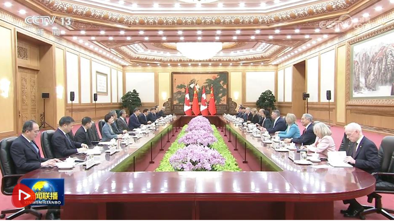 1月16日上午,國(guó)家主席習(xí)近平在北京人民大會(huì)堂會(huì)見來華進(jìn)行正式訪問的加拿大總理卡尼。