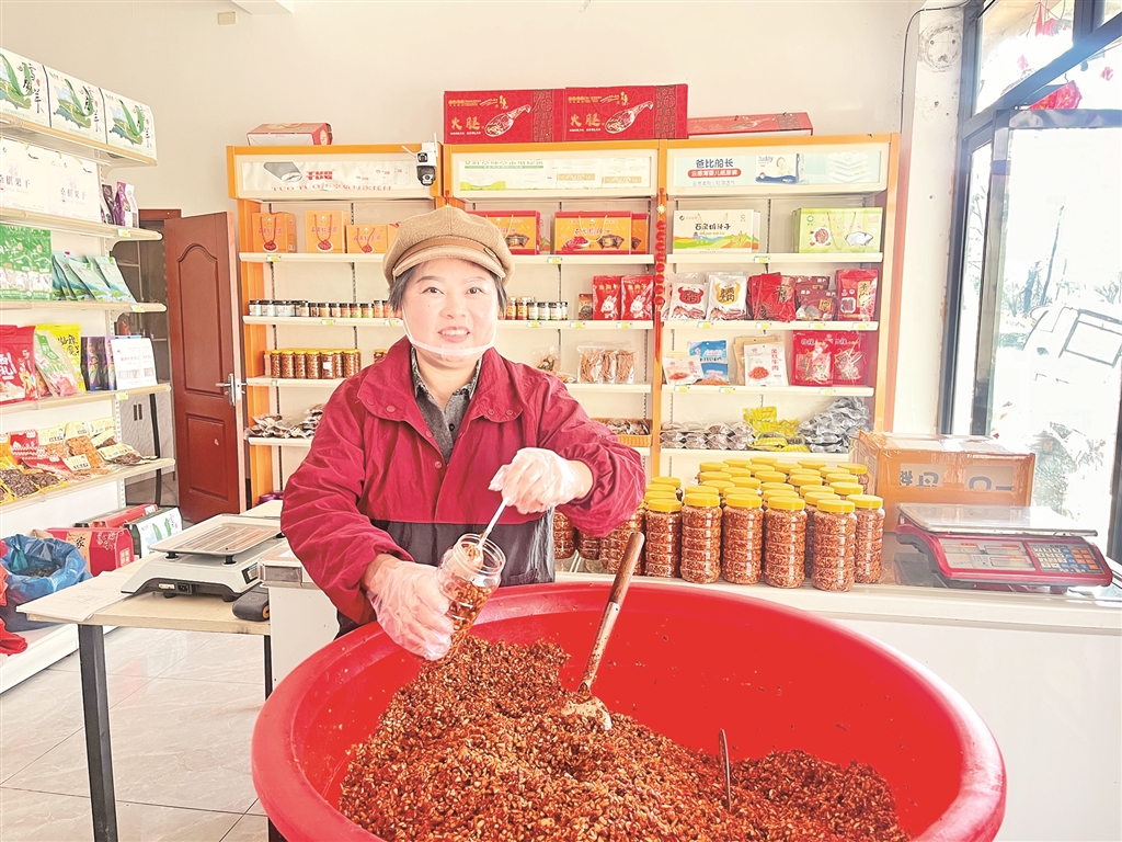 生意有了起色,丈夫的身體也逐漸康復,生活終于重新亮堂起來。作為鎮(zhèn)人大代表,劉小洪深知,一人富不算富,大家富才是真的富。她主動分享直播帶貨經驗,帶動周邊村民參與特產加工和網絡銷售。她優(yōu)先聘請村里的留守婦女和困難家庭來幫忙,手把手教她們技術。為了保證產品的純正鄉(xiāng)味,她堅持從本村及周邊村采購黃豆、辣椒、野油菜、干豇豆等原材料,平均每年收購約1萬公斤黃豆、2000余公斤辣椒、2000余公斤野油菜及干豇豆,讓鄉(xiāng)親們的農產品有了穩(wěn)定銷路,也變成了實實在在的收入。