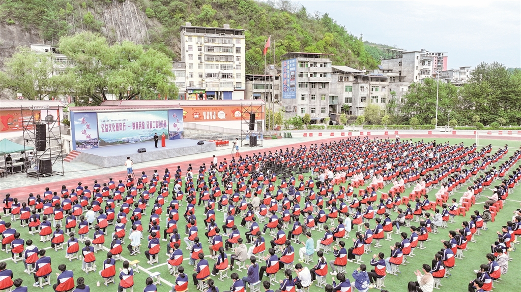 展演現(xiàn)場,紫陽小學學生帶來的民歌聯(lián)唱《童聲唱紫陽》贏得滿堂喝彩。孩子們用清亮的嗓音演繹《開山歌》《三月三上茶山》《螃蟹歌》等經(jīng)典陜南民歌,悠揚婉轉(zhuǎn)的旋律中透著童真童趣,將地域文化的獨特韻味展現(xiàn)得淋漓盡致?!斑@首歌是奶奶教我唱的,現(xiàn)在我在學校社團里學會了更多唱法?!敝鞒獙W生鄧可唯說,通過美育課程,她不僅學會了唱歌,還了解了民歌背后的民俗故事。