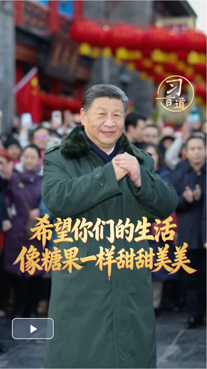 每逢春節(jié)前夕,總書記都會(huì)走到基層、百姓中間。在天津古文化街,總書記掏錢買麻花作為見面禮,送給身旁的小朋友,說“送你一份麻花”;在遼寧,總書記接下孩子們遞來的糖果,親切地說,你們的糖我收下,吃了你們的糖心里很甜。一個(gè)個(gè)親切有愛的感人畫面,充滿了溫情,傳遞著感動(dòng)。