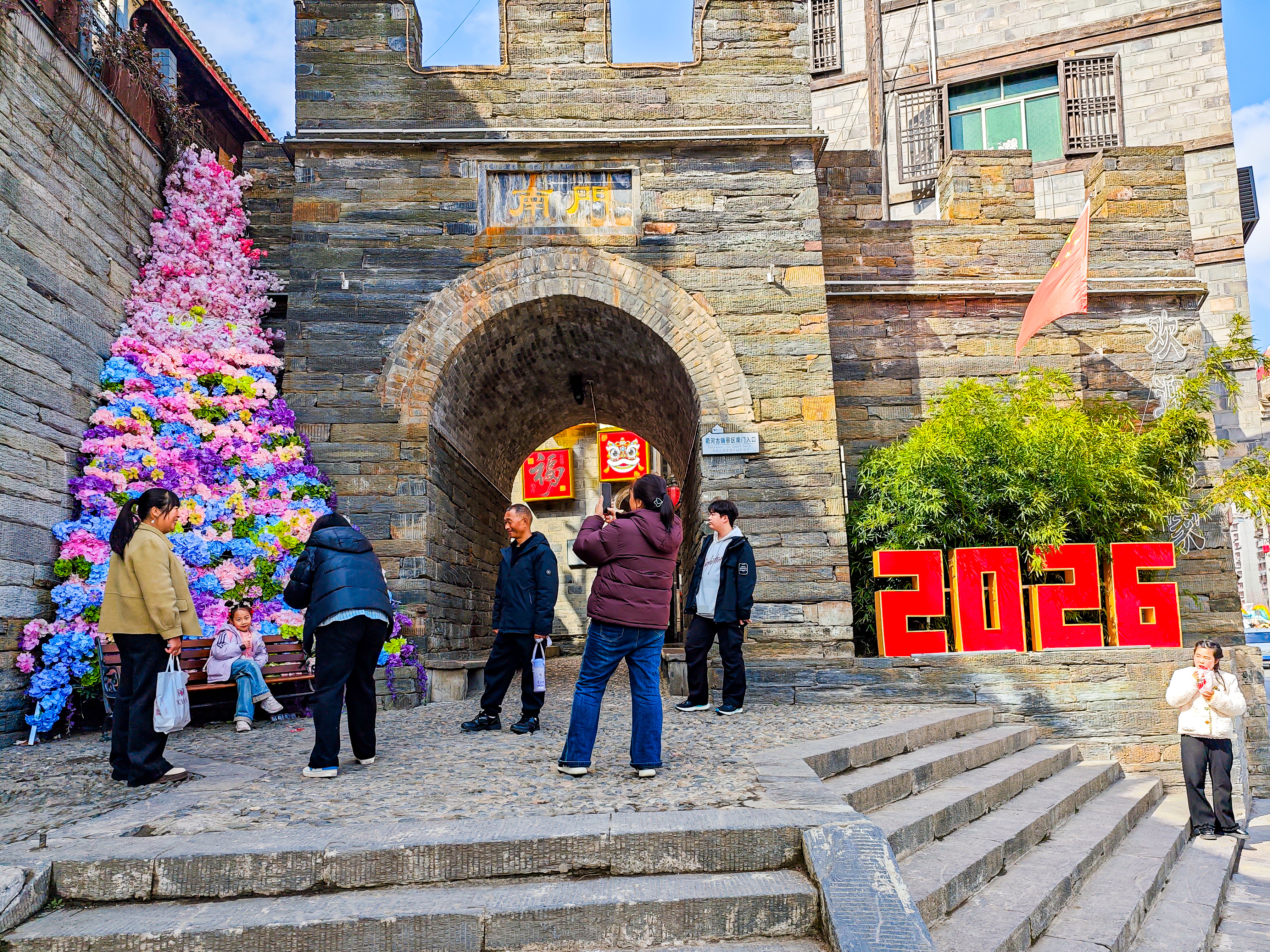 2月24日,旬陽市蜀河古鎮(zhèn)年味濃郁。青石板路上“2026”新春裝置與古建筑相映成趣,游客往來其間、拍照打卡,感受古鎮(zhèn)特有的節(jié)日氛圍。潘文進 攝