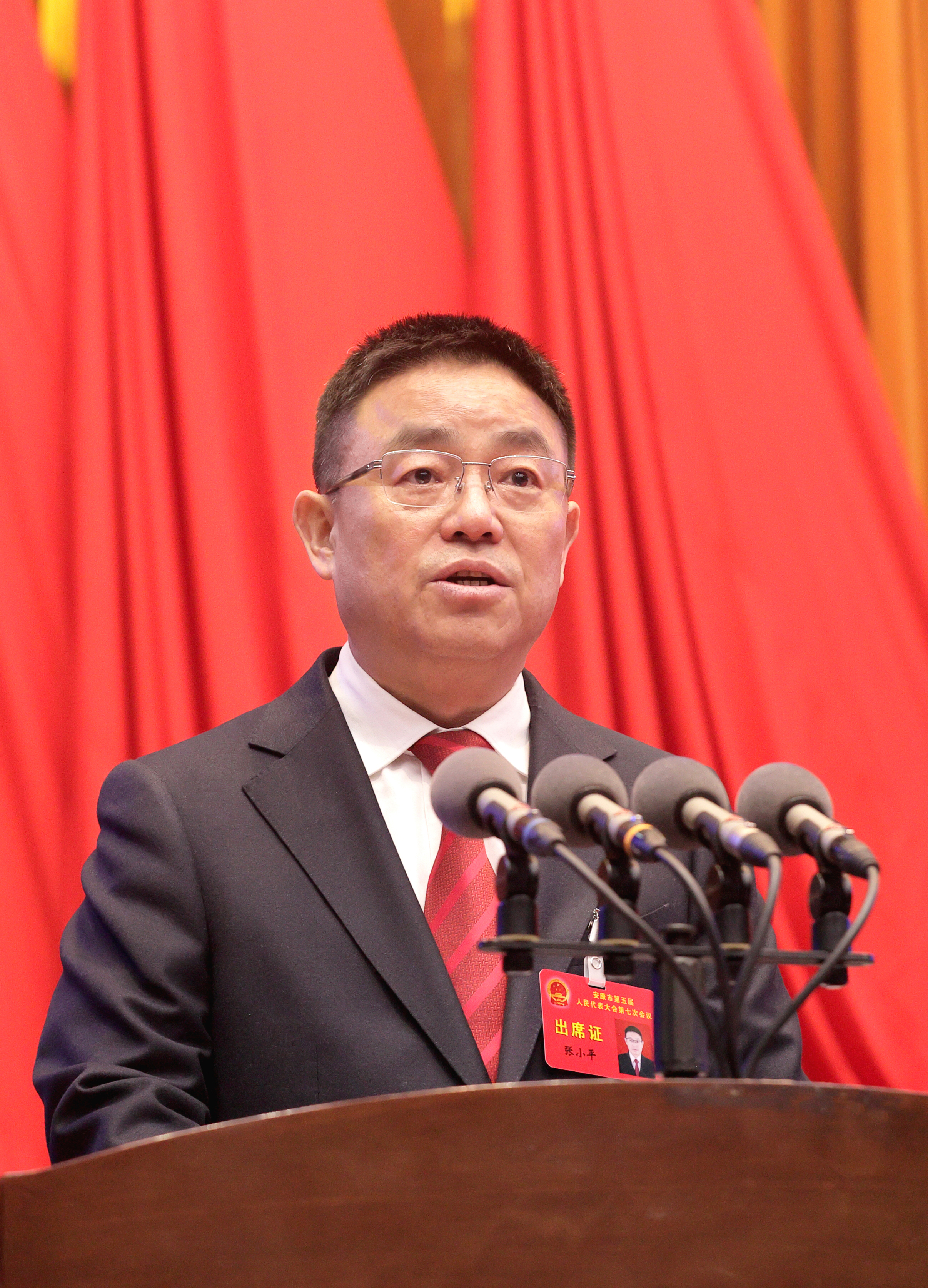 代市長張小平代表市人民政府向大會作政府工作報告。記者 潘潤生 攝