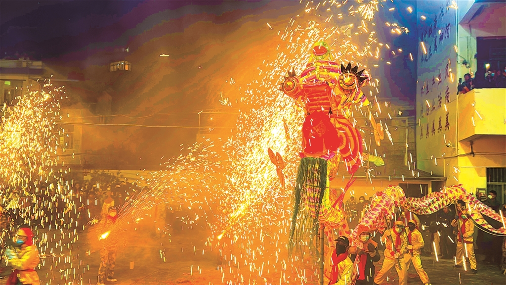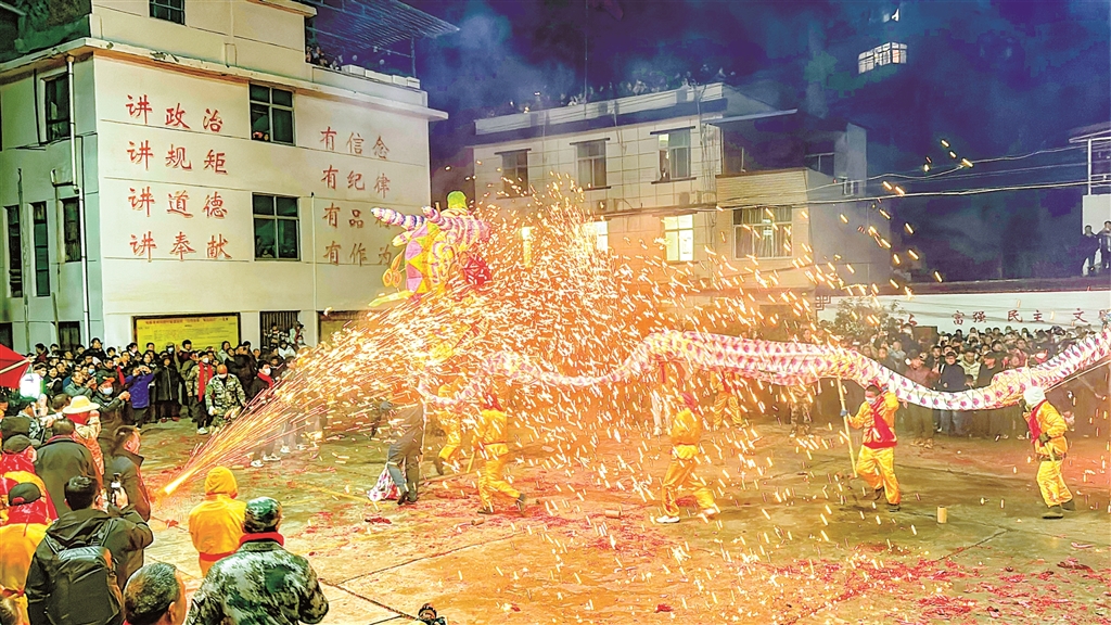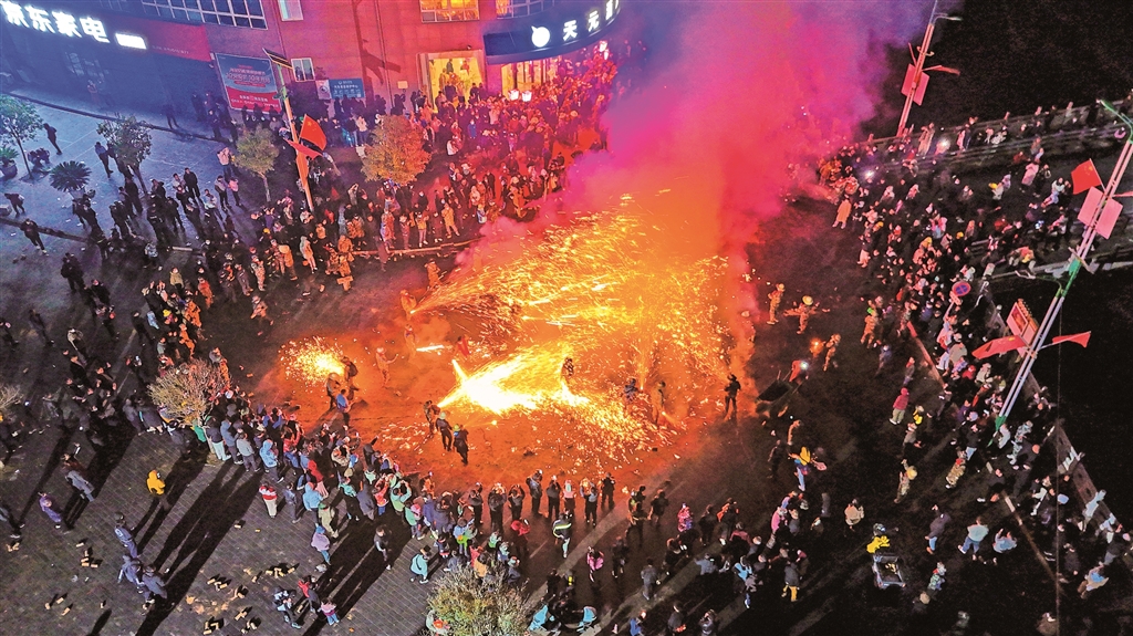 圖一:3月1日,旬陽市蜀河古鎮(zhèn)舉行“火獅子”民俗活動。烏蒙 羅瑞琦 攝