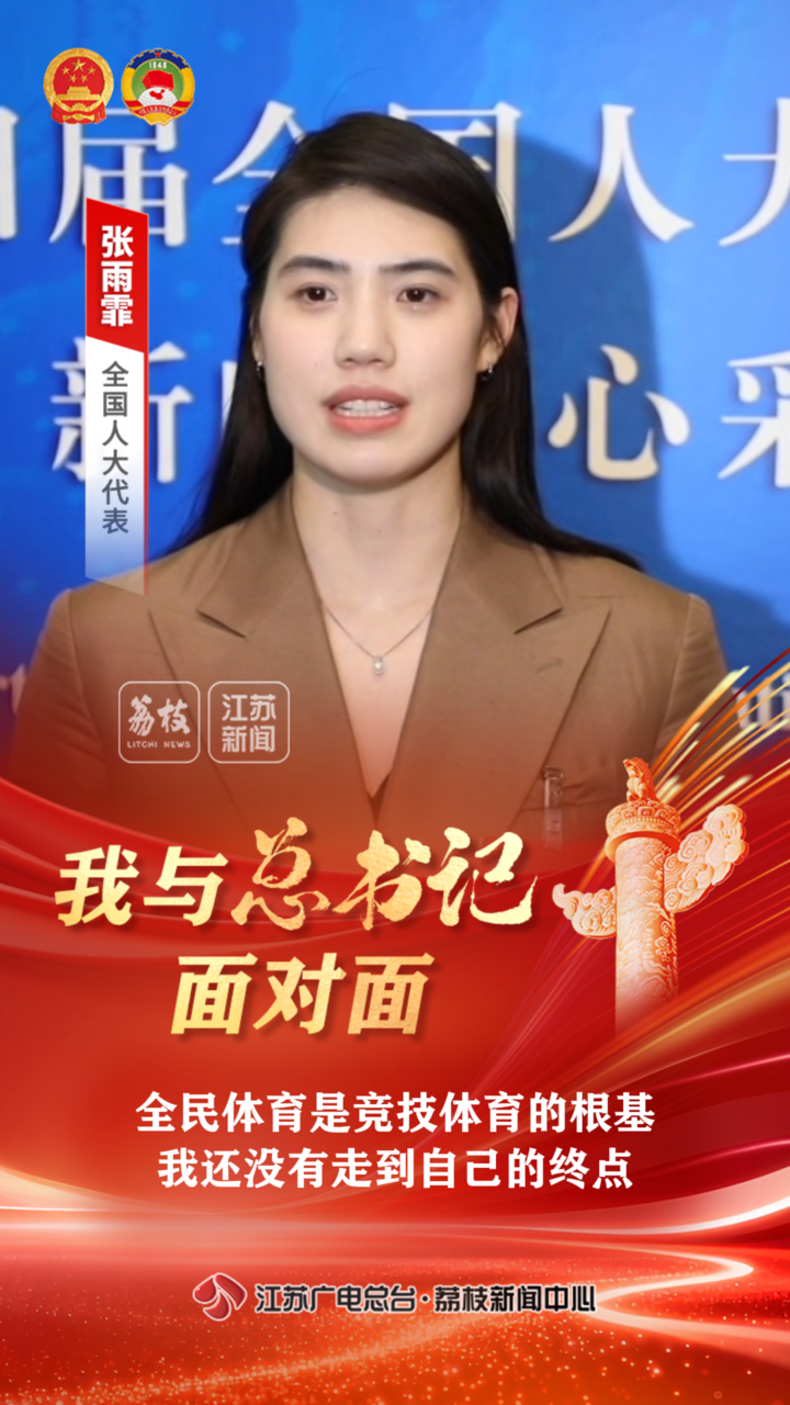 南京體育學(xué)院游泳隊(duì)運(yùn)動(dòng)員、游泳學(xué)院副院長(zhǎng)張雨霏代表,向總書(shū)記匯報(bào)了“蘇超”等大眾體育對(duì)競(jìng)技體育的促進(jìn)作用,她自己參加奧運(yùn)的“戰(zhàn)績(jī)”和對(duì)未來(lái)征戰(zhàn)賽場(chǎng)的目標(biāo)和規(guī)劃。
