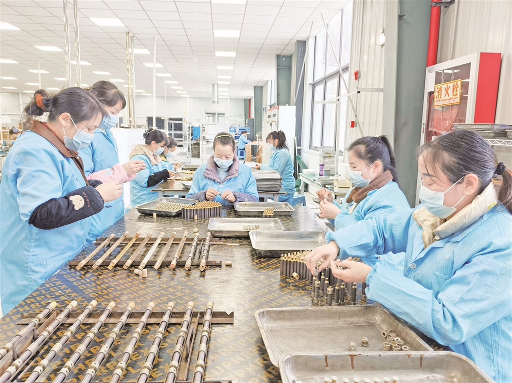 在陜西歐西克電子有限公司生產(chǎn)車間,各條生產(chǎn)線滿負(fù)荷運(yùn)轉(zhuǎn),高壓陶瓷電容器、GPS天線片等產(chǎn)品有序生產(chǎn)。從電子器件成型、燒制、焊接,到絲網(wǎng)印銀、質(zhì)量抽檢,每一道流程都嚴(yán)謹(jǐn)規(guī)范、精益求精,以高標(biāo)準(zhǔn)保障產(chǎn)品質(zhì)量。“復(fù)工復(fù)產(chǎn)后,企業(yè)將趕制訂單作為核心任務(wù),全力保障訂單交付?!必?fù)責(zé)人高維軍信心滿滿地表示,“2026年企業(yè)將聚焦生產(chǎn)設(shè)備更新與產(chǎn)能提升,加大科技創(chuàng)新和設(shè)備投入,爭取實(shí)現(xiàn)年產(chǎn)值9000萬元的目標(biāo),帶動更多群眾在家門口就業(yè)增收?!?/p>