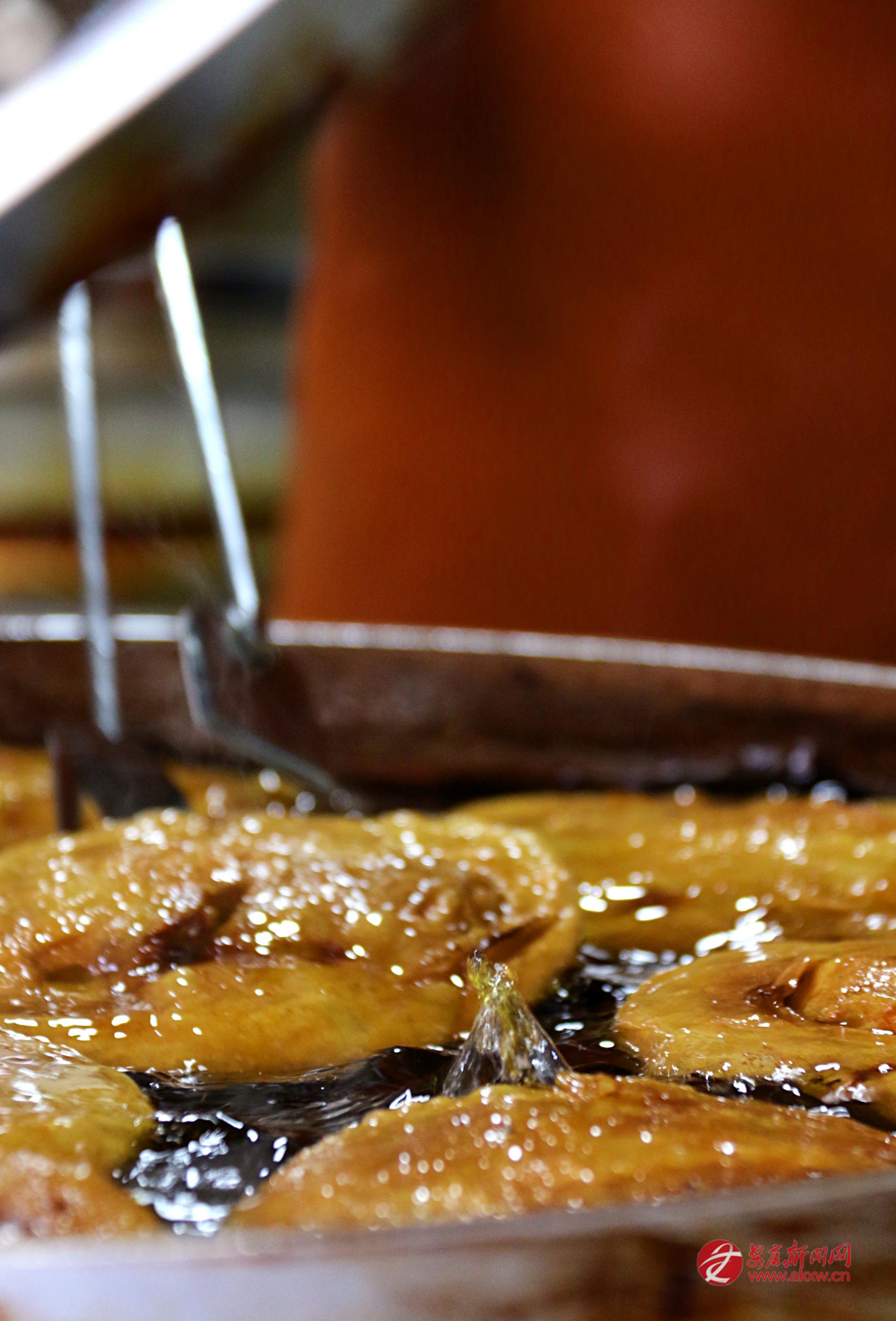 煎餅要用平底鍋,油要多,最好能沒過餅的一半。鍋燒熱了,放一點煉過的羊油,那油在鍋底滋滋地化開,香氣就起來了。餅放下去,小火慢煎,不住地翻面。眼看著,餅子慢慢鼓起來,皮兒漸漸金黃,有些地方焦黃了,有些地方還嫩著。起鍋的時候,整個餅子金黃黃的,油光光的,拿在手里燙得很。