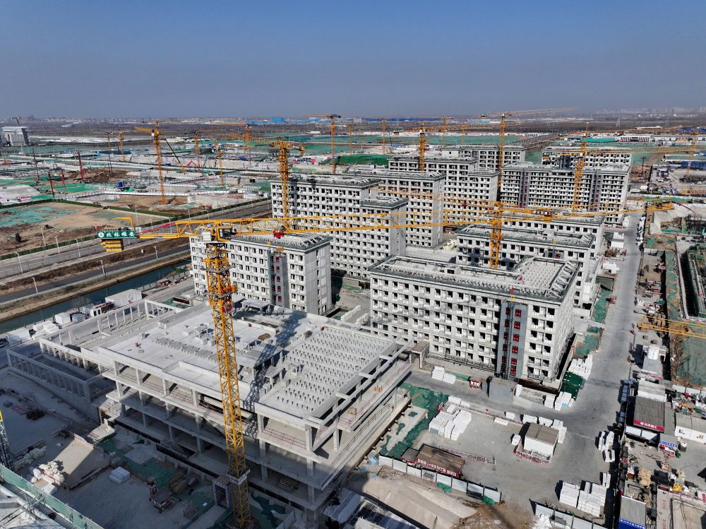 2021年是雄安新區(qū)大規(guī)模開發(fā)建設(shè)向縱深發(fā)展的關(guān)鍵一年。容東片區(qū)是雄安新區(qū)開發(fā)建設(shè)的先行區(qū)域,擔(dān)負(fù)著承接北京非首都功能疏解和安置回遷群眾的重要任務(wù)。這是2021年4月8日拍攝的雄安新區(qū)容東片區(qū)安置房項(xiàng)目建設(shè)現(xiàn)場(無人機(jī)照片)。2021年10月,容東第一批安置房開始交付。