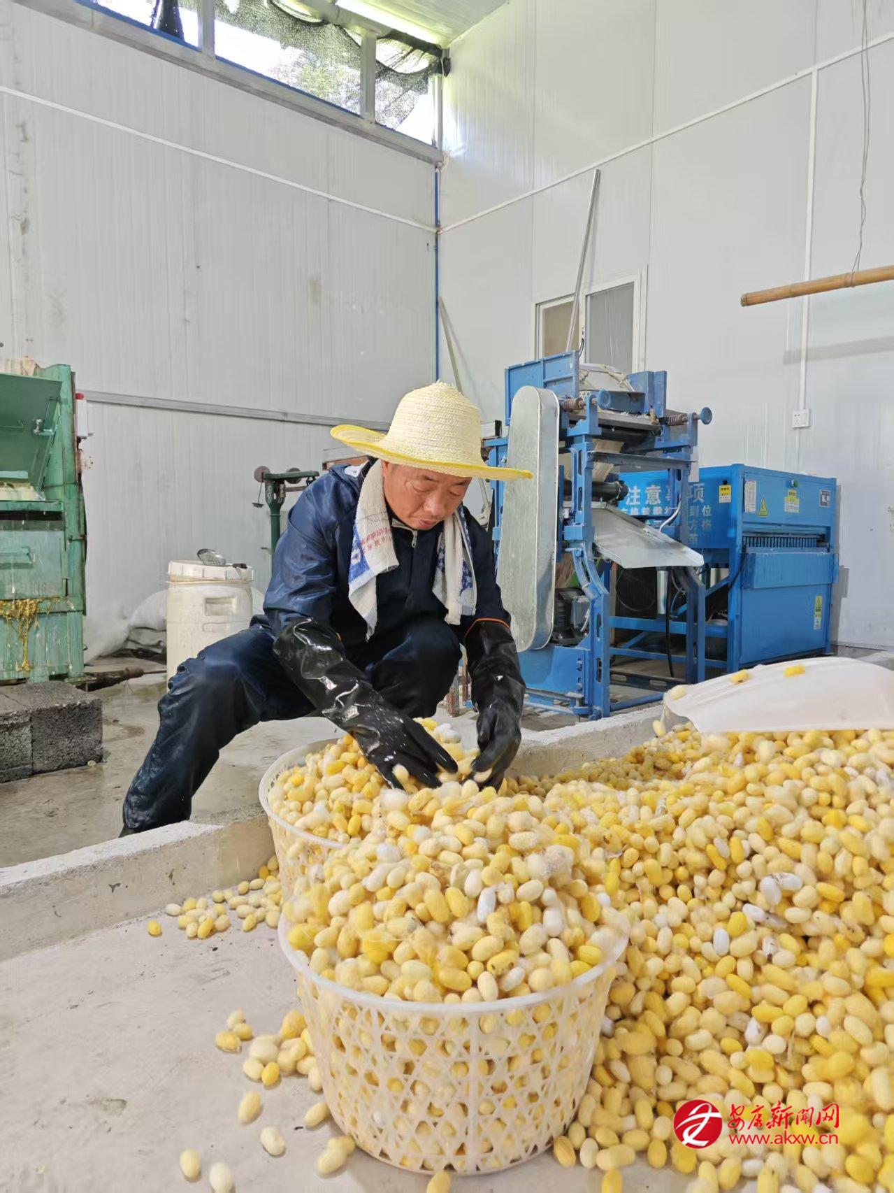 “以前養(yǎng)蠶全靠經(jīng)驗(yàn),溫濕度把控不好,蠶繭產(chǎn)量低?,F(xiàn)在有了智能設(shè)備和技術(shù)指導(dǎo),養(yǎng)蠶更輕松,收入也更高了?!崩罴液哟屦B(yǎng)蠶大戶(hù)王興義感慨道。作為產(chǎn)業(yè)帶頭人,他投資200余萬(wàn)元成立家庭農(nóng)場(chǎng),配套建設(shè)標(biāo)準(zhǔn)化養(yǎng)蠶室和加工廠(chǎng)房,引進(jìn)滑輪升降式省力化蠶臺(tái)、自動(dòng)化養(yǎng)蠶設(shè)備,實(shí)現(xiàn)了從種養(yǎng)到加工的全鏈條升級(jí)。