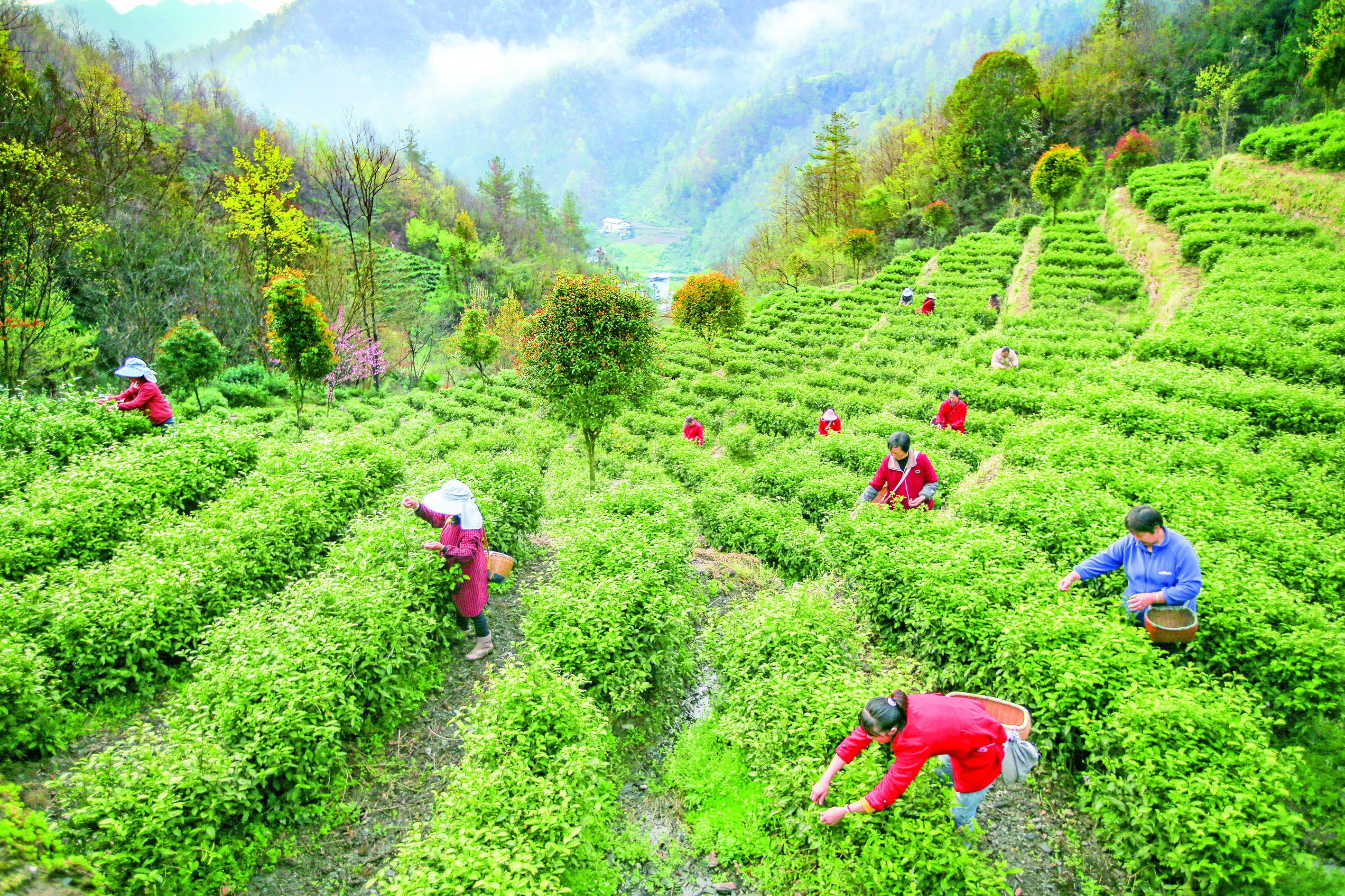 時(shí)下正值采茶高峰期,在白河縣宋家鎮(zhèn)雙喜村茶園內(nèi),茶農(nóng)們正搶抓農(nóng)時(shí)采摘春茶。據(jù)了解,今年該村春茶產(chǎn)量有所提高、質(zhì)量也更優(yōu)良,預(yù)計(jì)整個(gè)春茶采摘期持續(xù)1個(gè)月,全村今年春茶預(yù)計(jì)產(chǎn)量為20余萬斤,產(chǎn)值約6000萬元。  趙久剛 攝