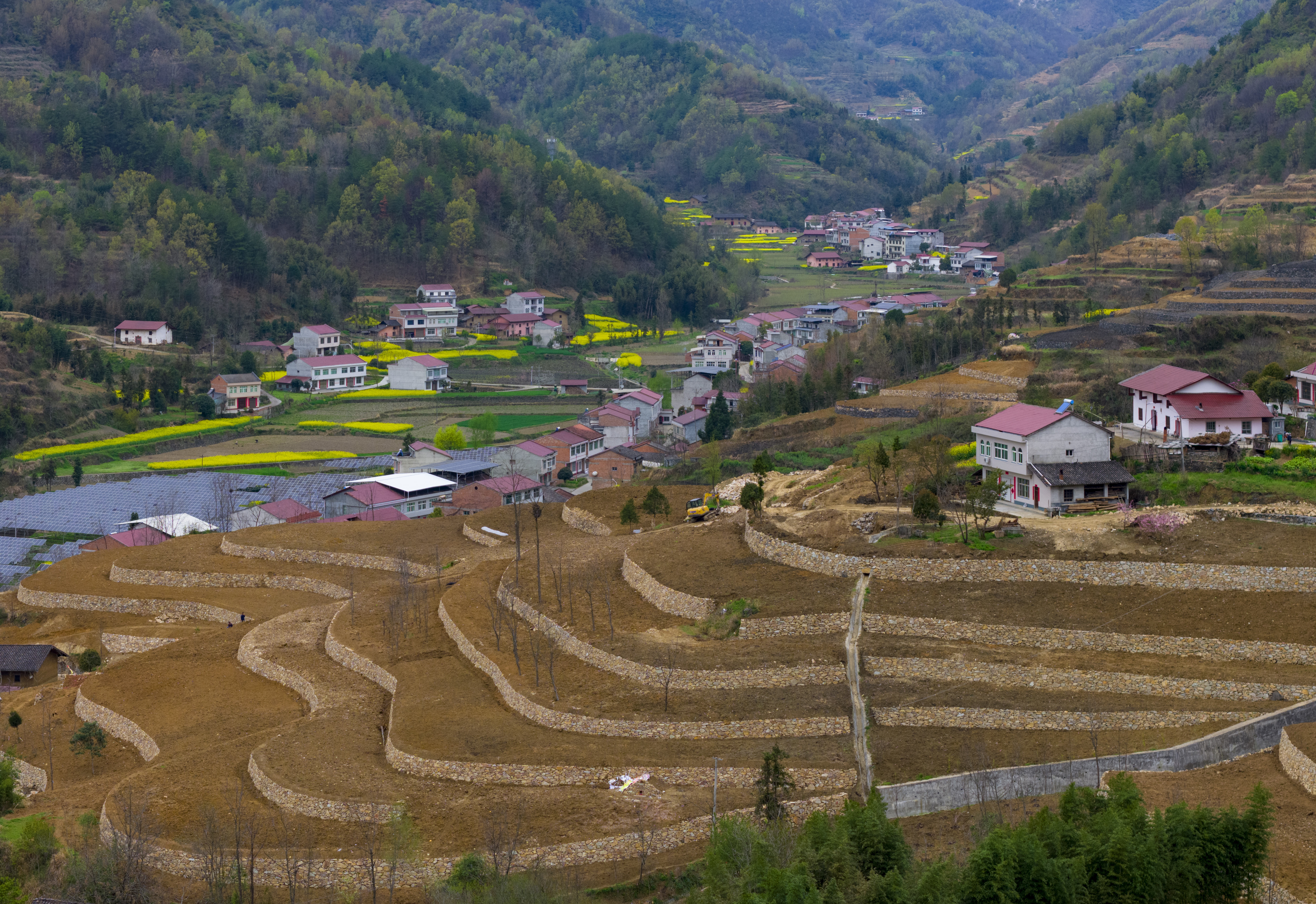 漢濱區(qū)大河鎮(zhèn)搶抓春耕有利時機(jī),組織實施坡改梯標(biāo)準(zhǔn)化農(nóng)田建設(shè),讓山間的“石坎坎兒”成為穩(wěn)定糧油增收的“金碗碗兒”。圖為該鎮(zhèn)興紅村連片320畝標(biāo)準(zhǔn)農(nóng)田建設(shè)一角。 陳均威 攝