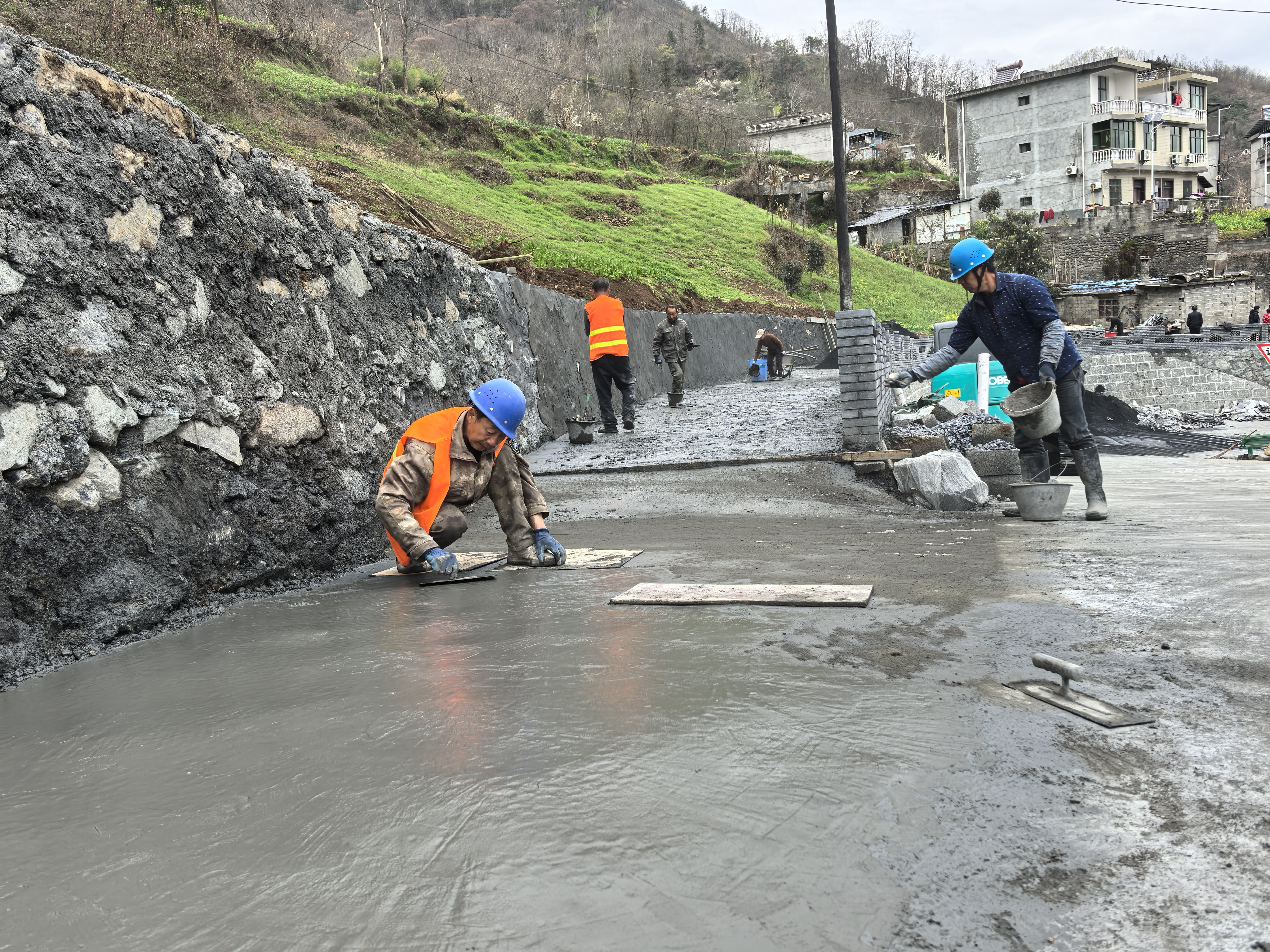 嵐皋縣城關(guān)鎮(zhèn)以農(nóng)村人居環(huán)境整治為抓手,爭取專項資金290萬元,對城關(guān)村28個城鄉(xiāng)接合部節(jié)點進行改造,提升鄉(xiāng)村顏值。目前,8個“口袋公園”和20個微景觀已基本建成,配套的景觀綠化、道路硬化正在加緊施工。圖為工人正在該村五組的一處節(jié)點施工。          張?zhí)毂?張山 攝