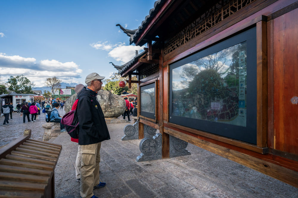 2024年3月23日,游客在麗江古城內(nèi)查看電子導(dǎo)覽大屏。云南省麗江市近年充分應(yīng)用5G、物聯(lián)網(wǎng)、大數(shù)據(jù)、人工智能等數(shù)字化技術(shù),大力推動智慧旅游發(fā)展,提升服務(wù)水平和游玩體驗(yàn),為當(dāng)?shù)匚穆卯a(chǎn)業(yè)發(fā)展注入新活力。