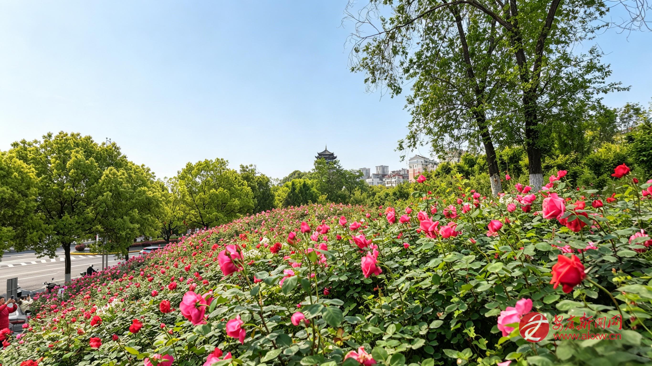從金川門到西津漢江大橋的漢江堤岸上,月季長廊如約綻放,紅似火、粉如霞,將濱江步道裝點得如詩如畫。市民和游客徜徉其間,與繁花合影,與江風(fēng)相擁,盡情享受春日的愜意時光。