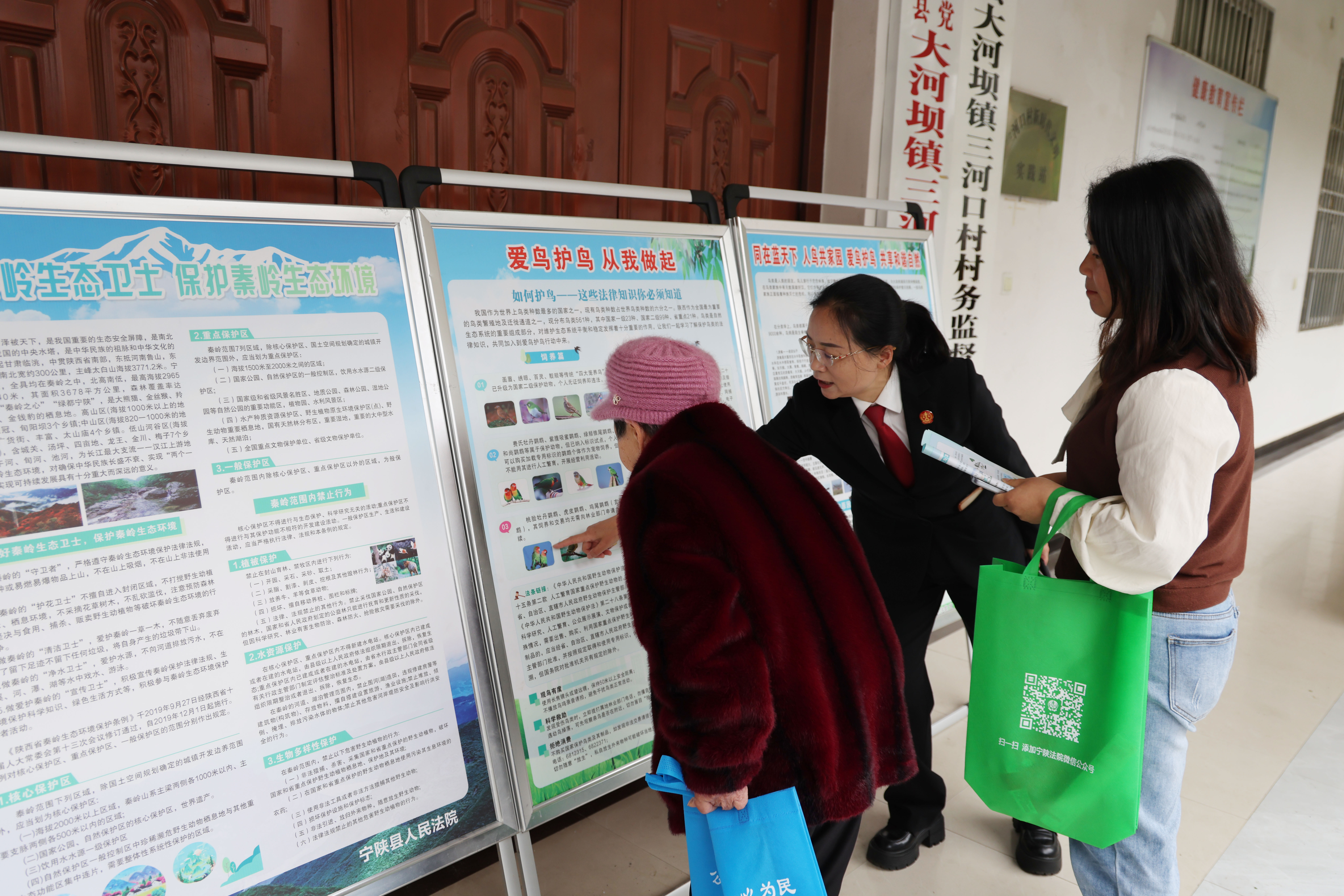 在佛坪縣大河壩鎮(zhèn)三河口村,兩地法院干警結(jié)合轄區(qū)群眾生產(chǎn)生活實際,用通俗易懂的語言,面向群眾精準(zhǔn)解讀《中華人民共和國生態(tài)環(huán)境法典》《陜西省秦嶺生態(tài)環(huán)境保護條例》等核心法律法規(guī)。同時,聚焦非法捕撈水產(chǎn)品、違規(guī)穿越秦嶺核心保護區(qū)、破壞水源地環(huán)境等頻發(fā)違法情形,依托本地典型案例,深入淺出剖析各類生態(tài)環(huán)境違法行為的法律責(zé)任與生態(tài)危害,以“身邊案例”警醒“身邊群眾”,清晰劃定秦嶺生態(tài)保護法律紅線,引導(dǎo)群眾自覺遵守環(huán)保法律法規(guī),主動抵制各類破壞秦嶺生態(tài)的違法違規(guī)行為?;顒又校皆O(shè)置趣味環(huán)保知識有獎問答環(huán)節(jié)。群眾踴躍舉手、積極互動,在輕松鮮活的氛圍中加深生態(tài)保護知識記憶,進(jìn)一步夯實全民共同守護秦嶺、保護水源地的思想根基,切實提升群眾生態(tài)保護意識、法治觀念和行動自覺。