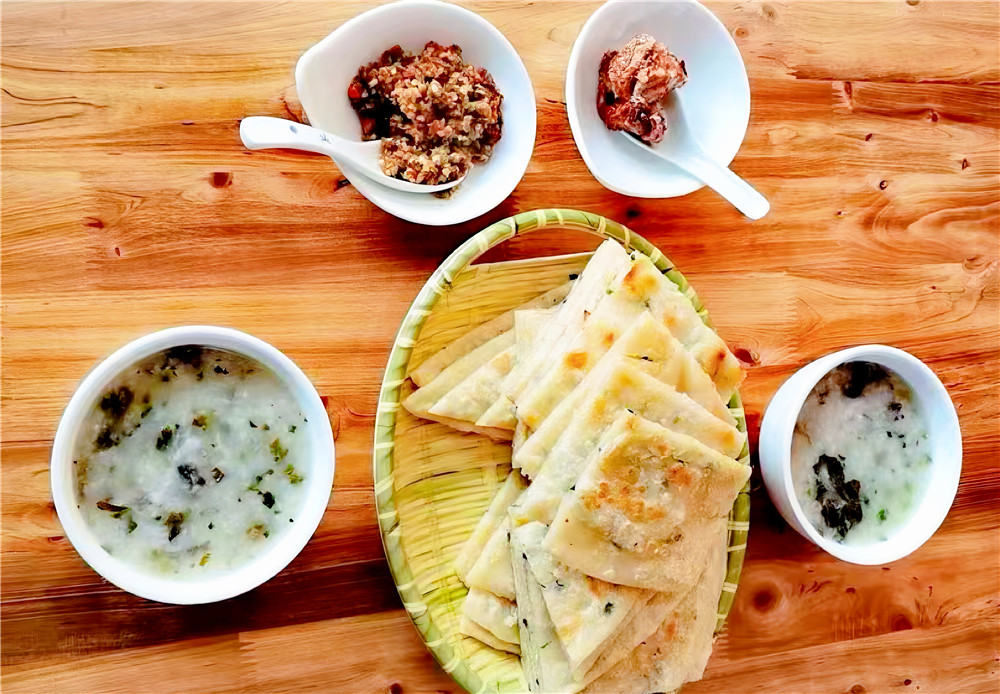 ? 12:00-13:30 程?hào)|村午餐:品嘗油渣油餅、酸菜拌湯、苞谷糊肚兒,小院小憩