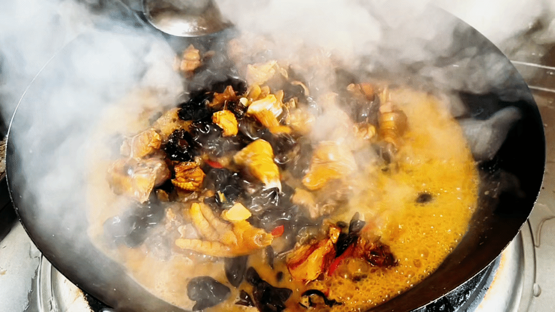 程?hào)|的魅力,首在舌尖。招牌鐵鍋柴火雞選用本地散養(yǎng)土雞現(xiàn)殺現(xiàn)做,柴火慢燉搭配山野鮮菌、時(shí)令蔬菜等,湯汁醇厚、肉香濃郁。