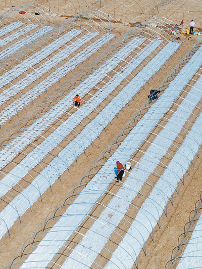 早春時節(jié),農(nóng)民搶抓農(nóng)時開展春耕,田間地頭一派繁忙景象。圖為3月13日,江蘇省灌云縣農(nóng)民在田間勞作。ecY安康新聞網(wǎng)
