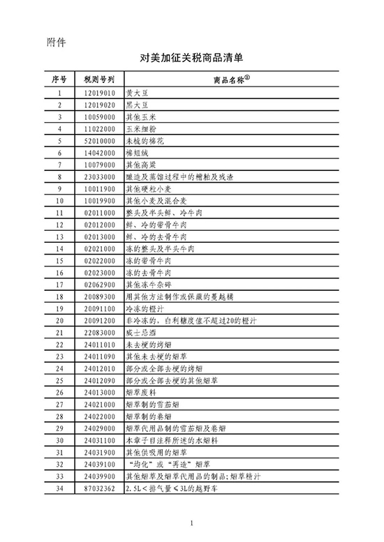 附:對美國加征關(guān)稅商品清單wdW安康新聞網(wǎng)