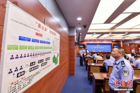 資料圖:廣東省公安廳內(nèi)展示的“賽比安”網(wǎng)絡(luò)傳銷組織架構(gòu)圖。中新社記者 陳驥旻 攝
